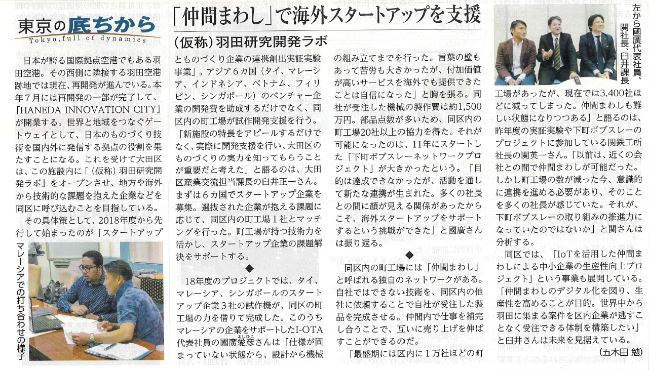 弊社代表の國廣が海外スタートアップ支援について取材を受けました。(『東商新聞』(2020.3.20)掲載)